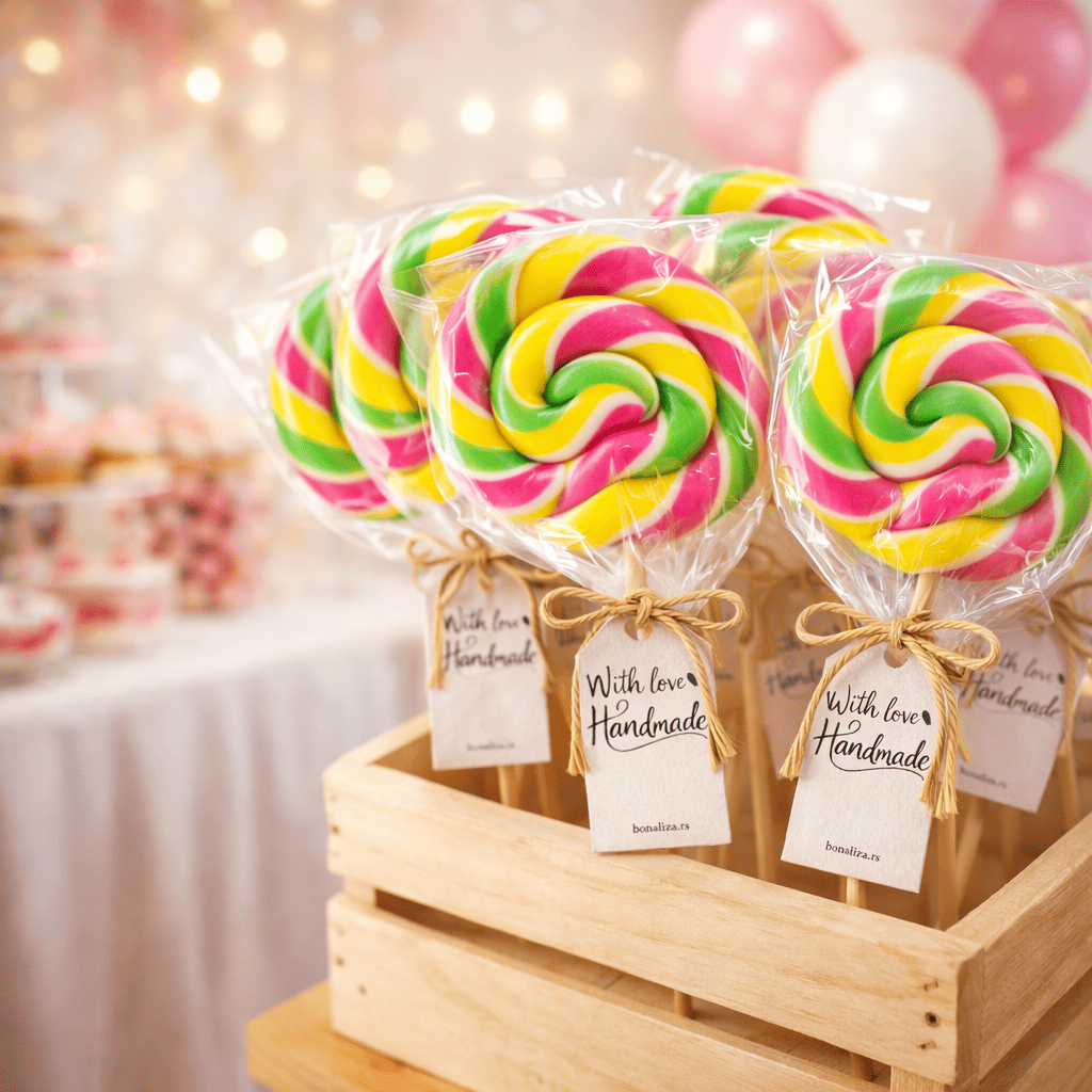 Svaka lizalica predstavlja spoj umetnosti, ručnog rada i pozitivne energije — stvorena da unese osmeh i boje u svaku priliku.